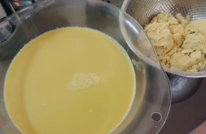 곱게 간 생강을 볼에 담고 찬물을 부어 약 30분에서 1시간 정도 담가둡니다. 중간에 물을 한두 번 갈아주면 더욱 좋습니다. 이 과정을 통해 생강의 강한 아린 맛과 쓴맛이 상당히 중화됩니다. 30분이 지나면 면포나 고운 체에 밭쳐 물기를 꽉 짜줍니다. (착즙기를 썼다면 이 과정은 생략 가능)