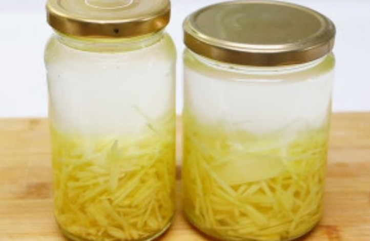 미리 열탕 소독하여 물기 없이 말린 유리병에 설탕과 버무린 생강을 차곡차곡 담아줍니다. 맨 위에는 남은 설탕을 이불처럼 덮어 공기와의 접촉을 막아주세요. 실온에서 1~2일 정도 두어 설탕을 녹인 뒤, 냉장고에 넣어 1주일 정도 숙성시키면 맛있는 생강청이 완성됩니다. 😋