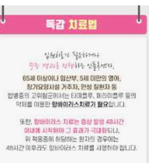 독감 치료의 핵심은 증상 발현 후 48시간 이내 항바이러스제를 복용하는 것입니다. 독감 증상 순서를 알고 있다면 오한과 고열이 시작되는 즉시 병원을 방문해 빠른 치료를 받을 수 있습니다.