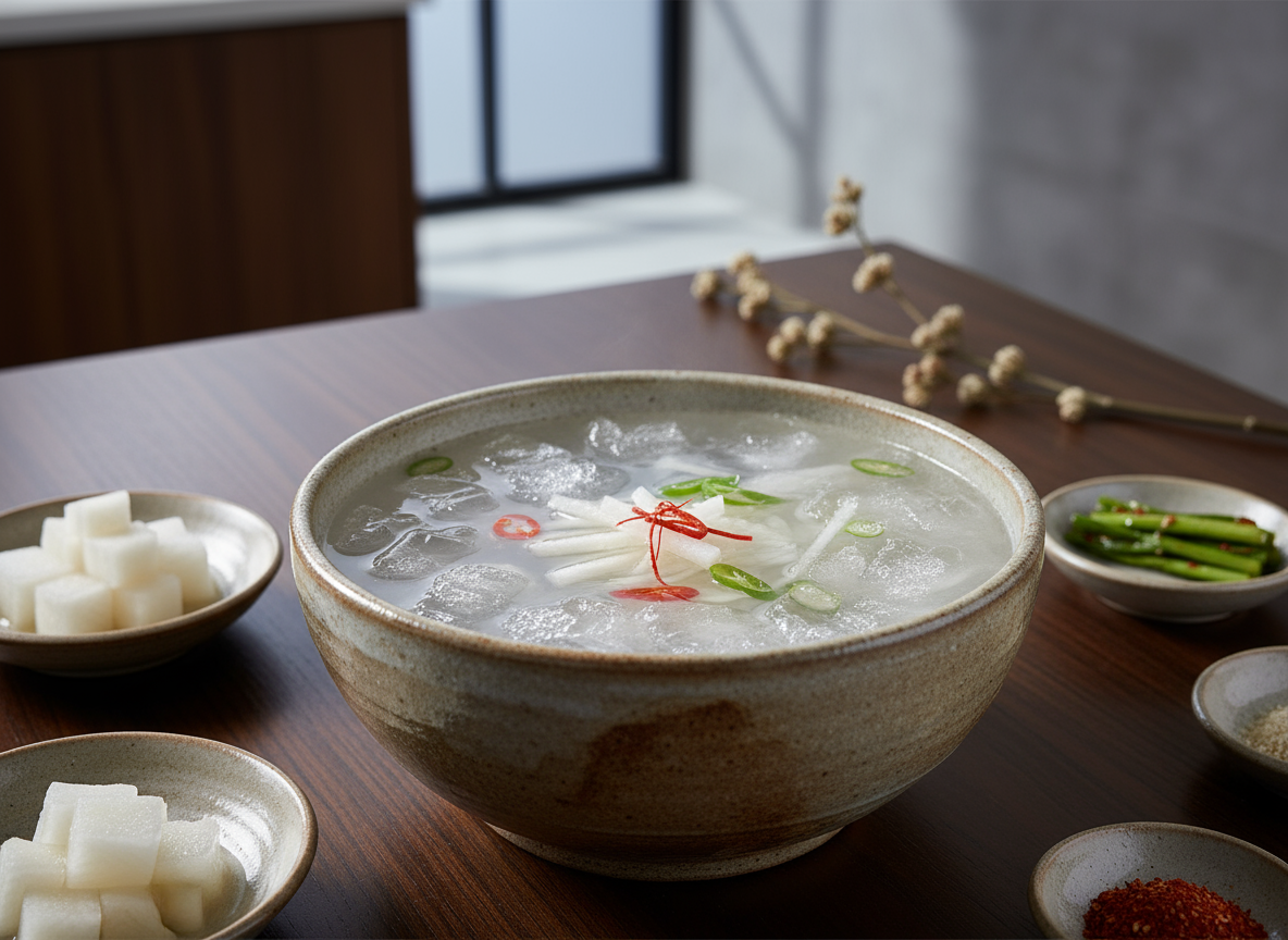 찬바람이 옷깃을 여미게 하는 계절이 오면, 어김없이 생각나는 맛이 있습니다. 바로 살얼음 동동 띄운 그 시원하고 알싸한 동치미 한 그릇입니다. 😊 갓 찐 뜨끈한 고구마 위에 척 얹어 먹어도, 명절의 기름진 음식과 곁들여도 이만한 별미가 없죠.