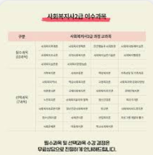 사회복지사 2급 자격증 취득방법에서 필수과목은 10개 모두 이수하셔야 합니다. 사회복지의 기초부터 실천, 정책, 행정까지 전반적인 영역을 다루게 됩니다.