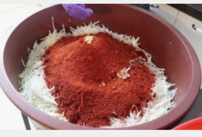 | 고춧가루 | 1.1kg ~ 1.3kg | 김치 색과 매운 정도에 따라 조절. (총량의 70% 먼저 넣고 조절) |