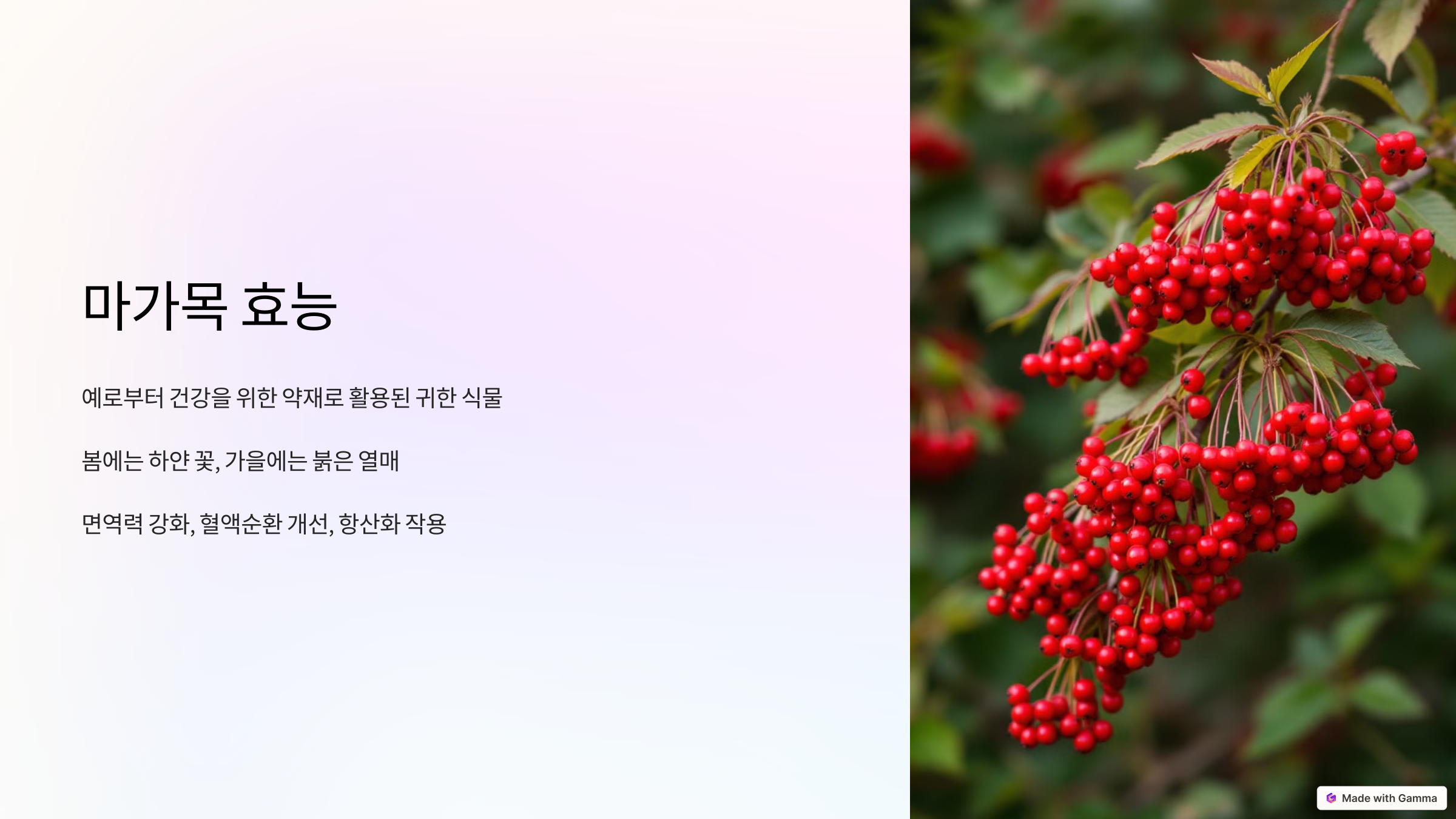 마가목은 단순한 나무가 아니라 우리 몸을 다각도로 지켜주는 자연의 보물입니다.