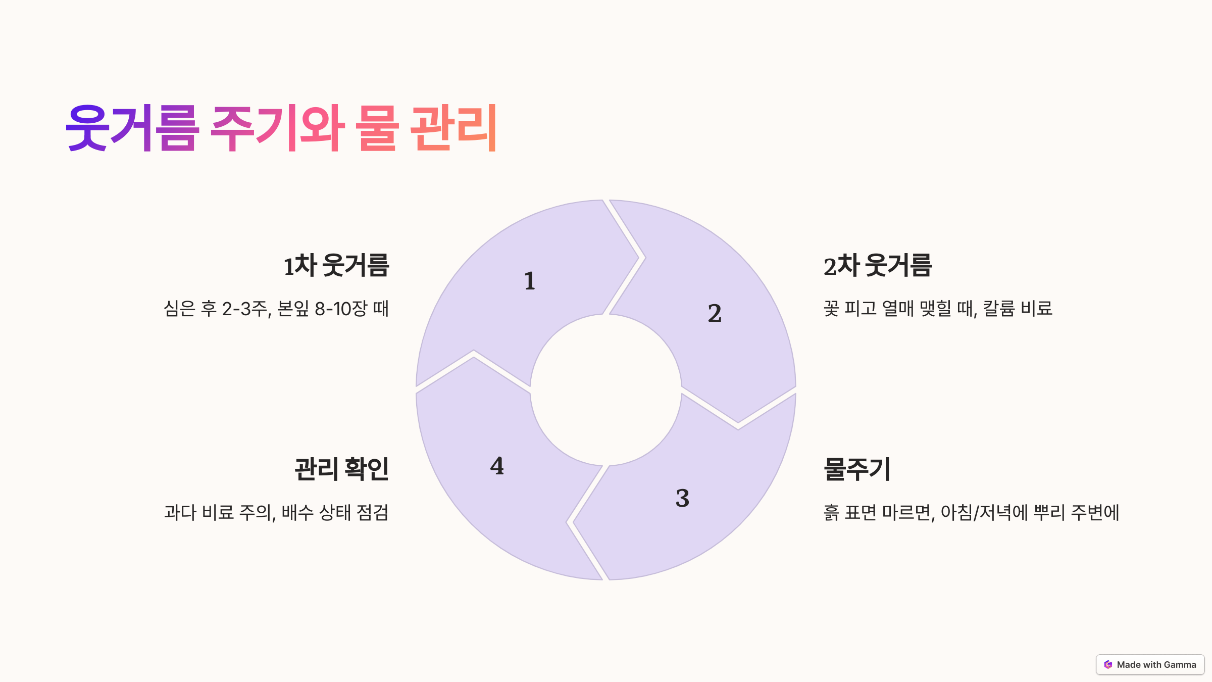 추가 비료(웃거름)는 성장 단계에 맞춰 필요해요.