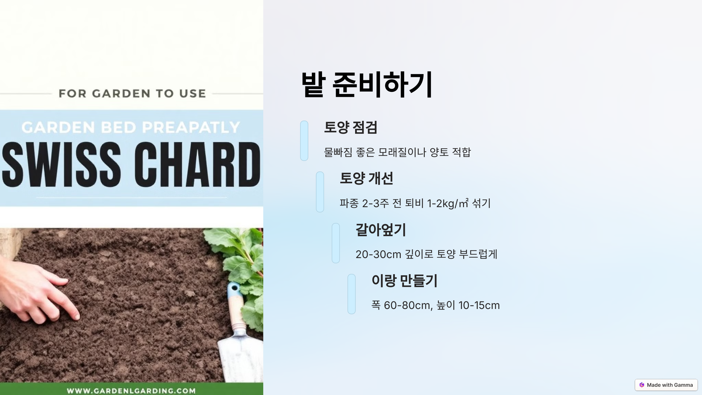 근대는 초보자도 쉽게 키울 수 있는 작물이에요. 계절에 맞춰 심고, 토양과 물 관리만 잘해준다면 싱싱한 잎과 달콤한 뿌리를 맛볼 수 있을 거예요. 텃밭에서 직접 키운 근대로 맛있는 요리를 해보세요!