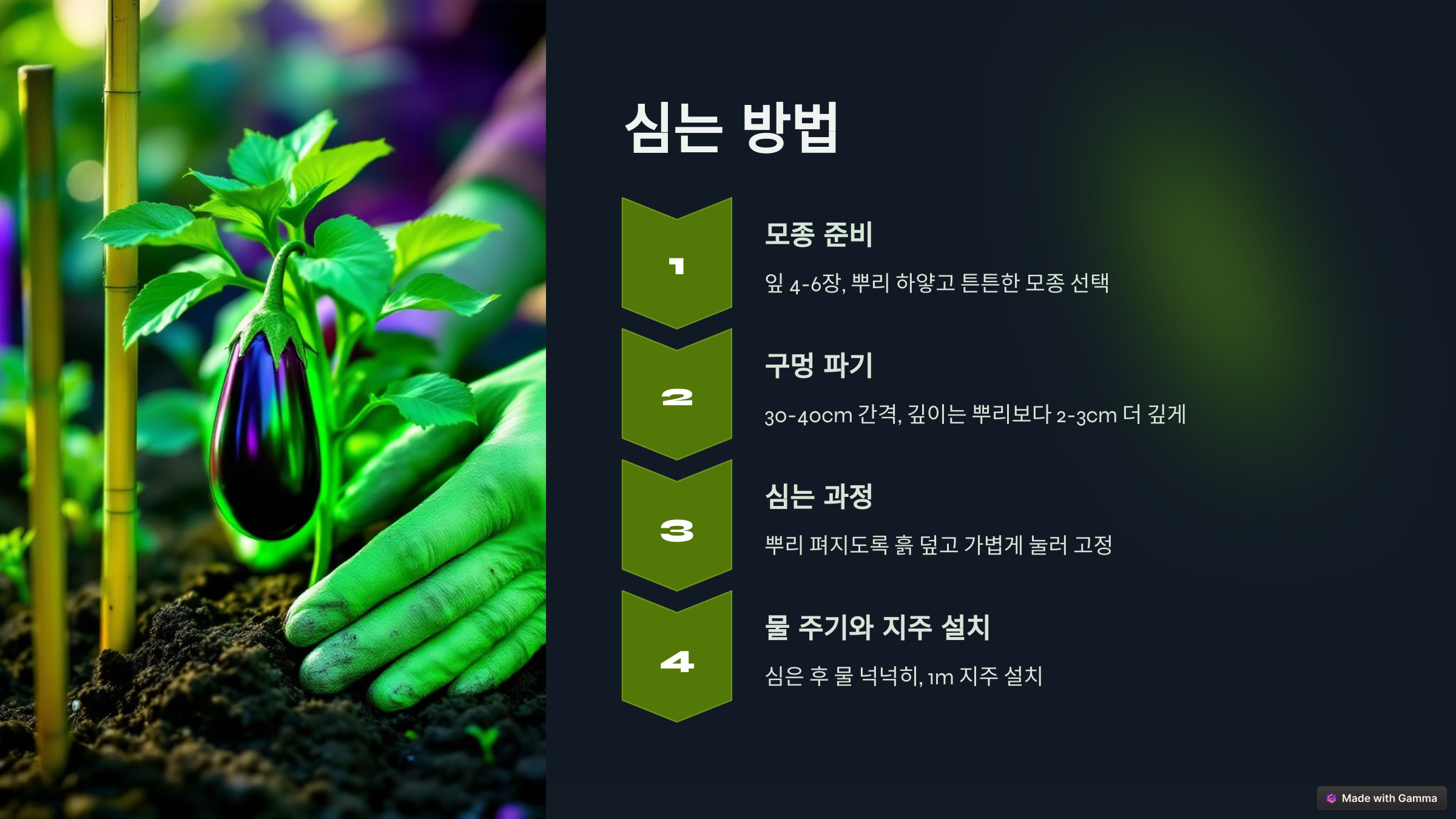 모종 심기는 가지 재배의 핵심이에요. 건강한 모종을 골라 뿌리가 잘 자리 잡도록 신경 써야 해요.